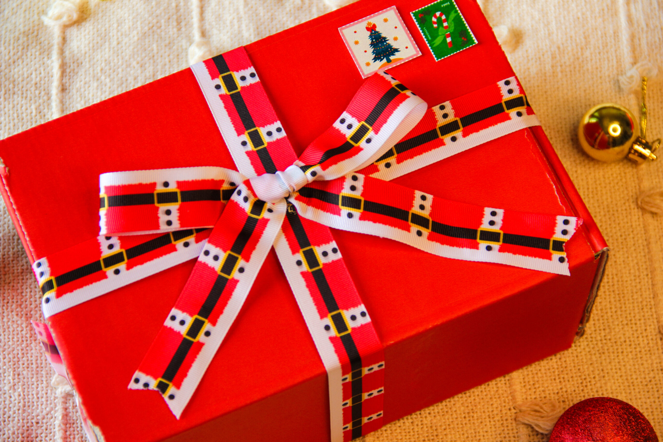 Red Corrugated Box: Wrapped in a Christmas Ribbon