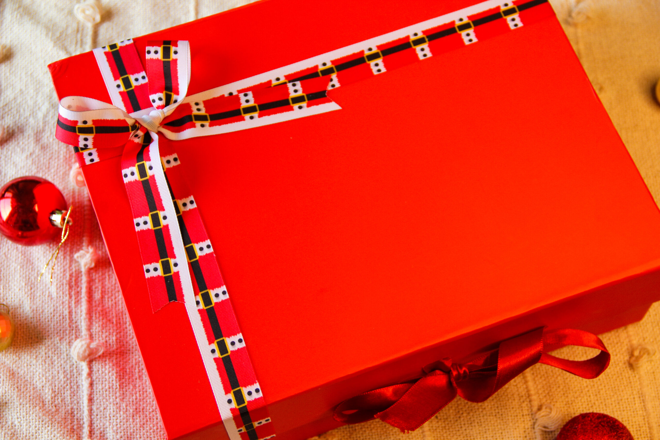 - Red Box: Foldable and Reusable box with Christmas ribbon