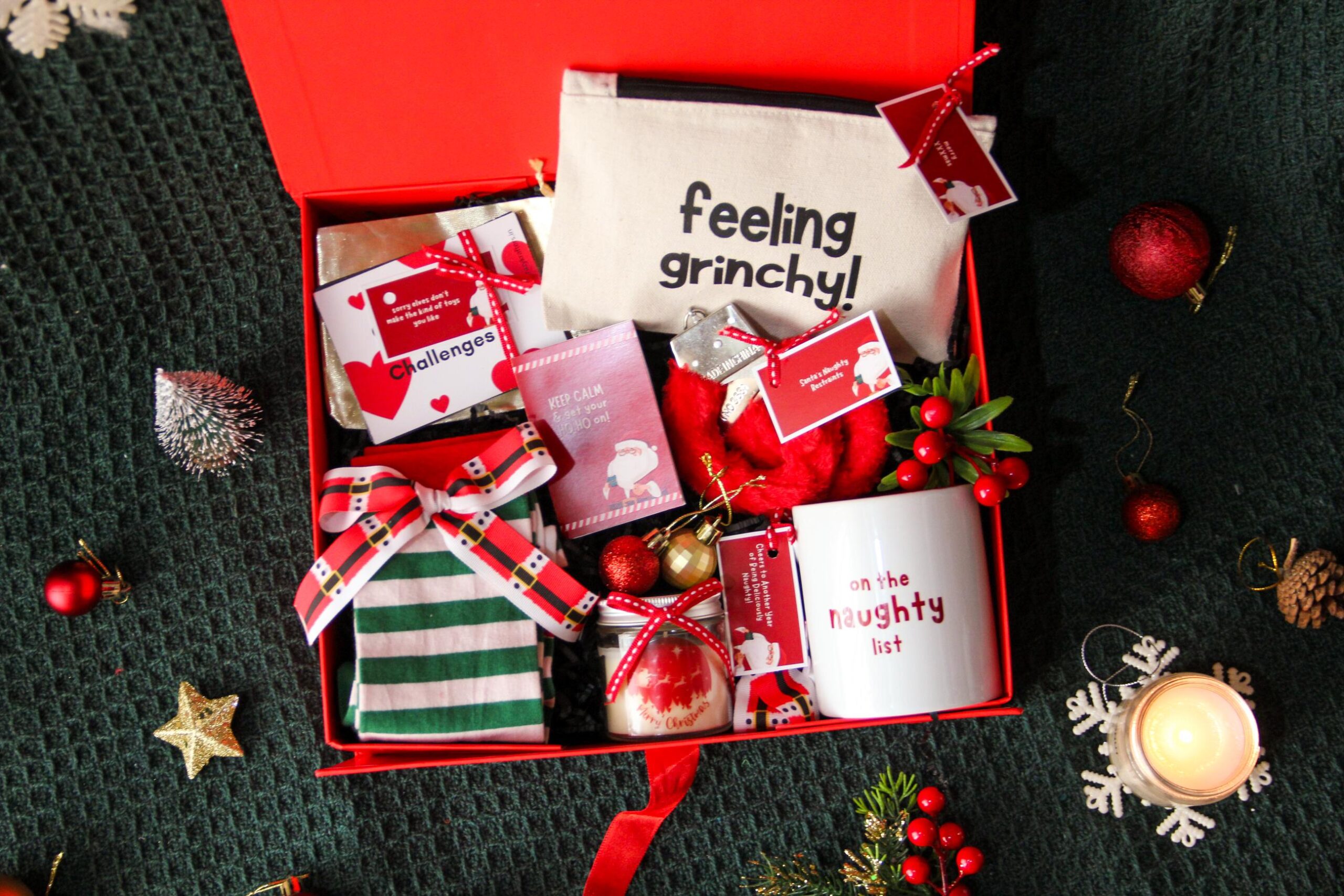 This Christmas hamper adds a playful twist to traditional Christmas cheer, with a touch of humor and warmth!