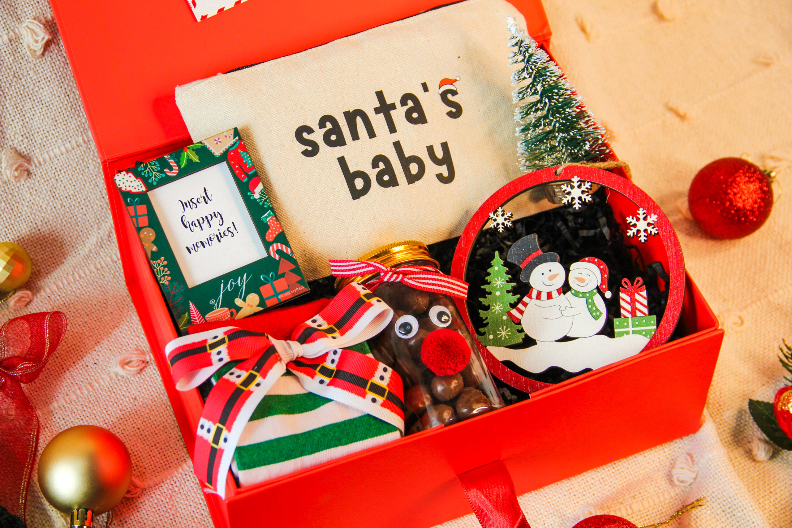 Santa’s Baby hamper is a cute and festive way to celebrate the season, with fun and cozy elements!