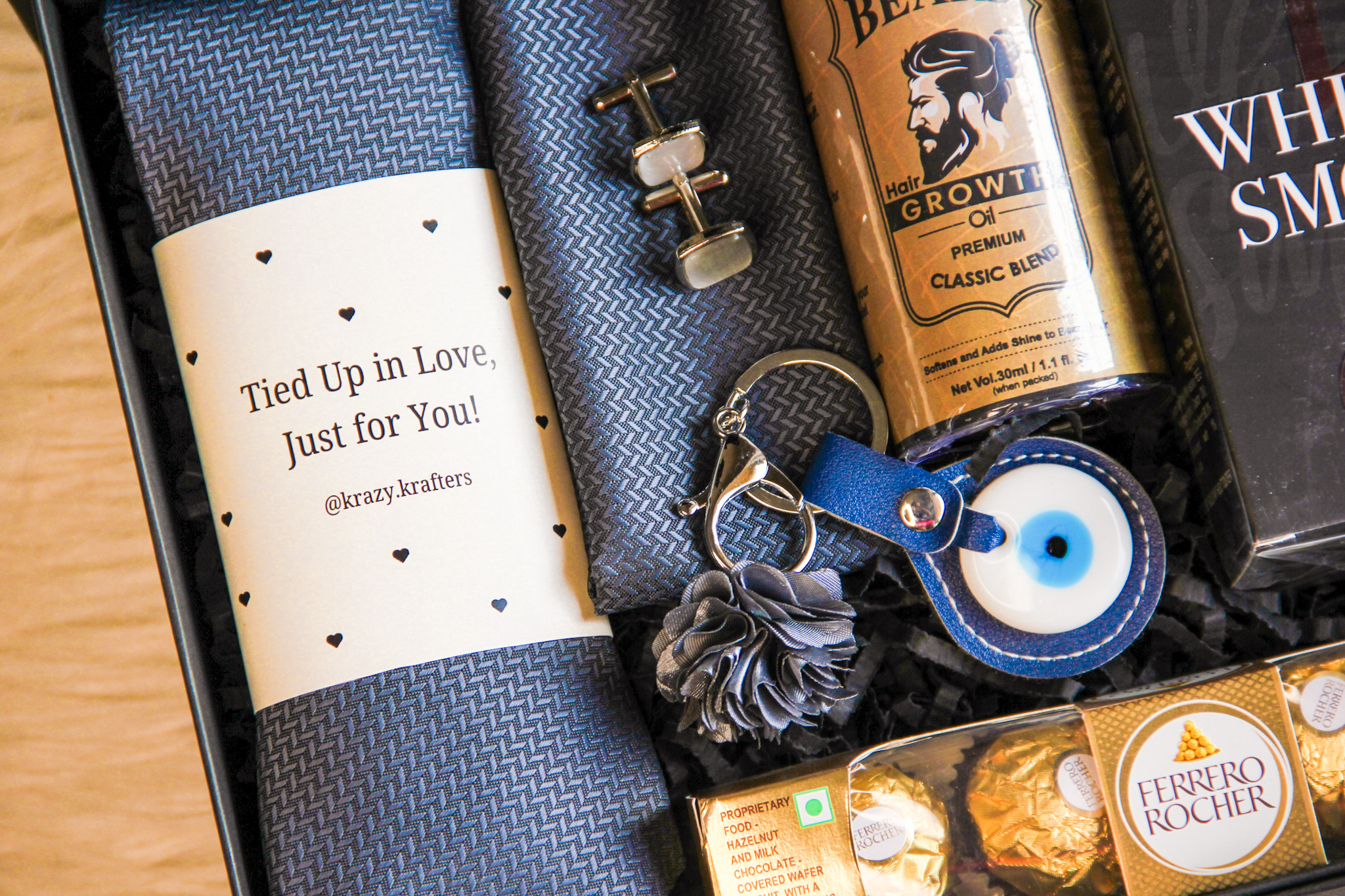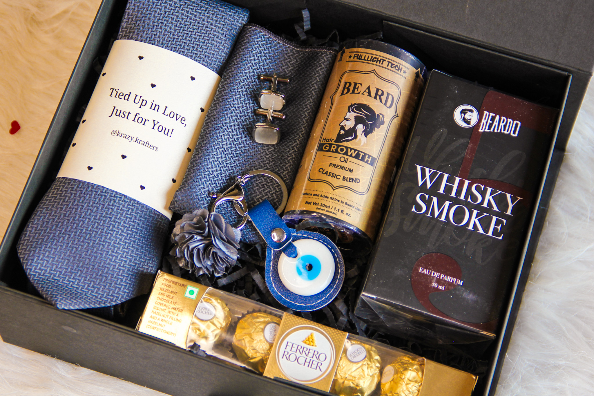 Treat him to a thoughtful and stylish Valentine Hamper filled with goodies and essentials: