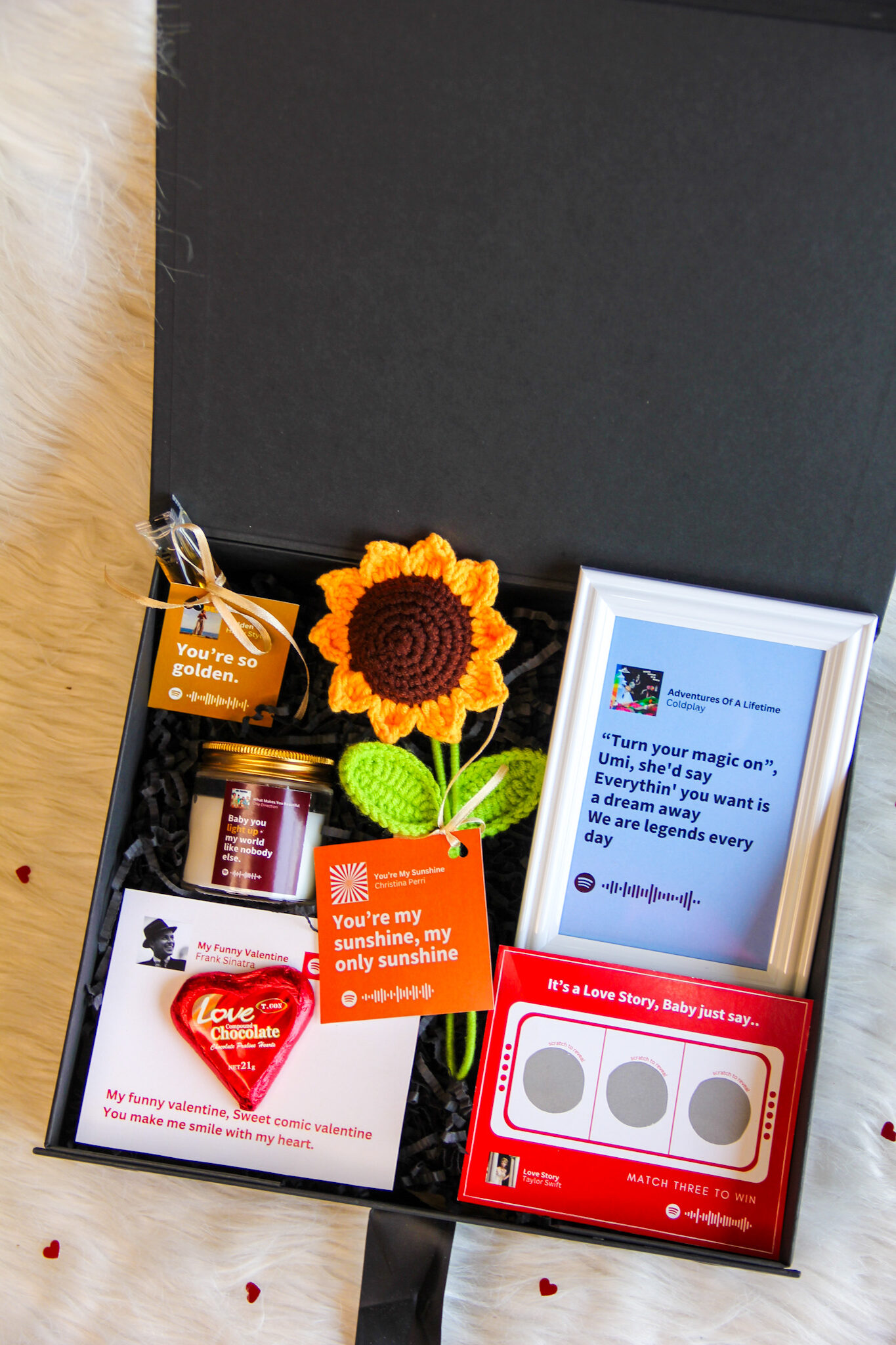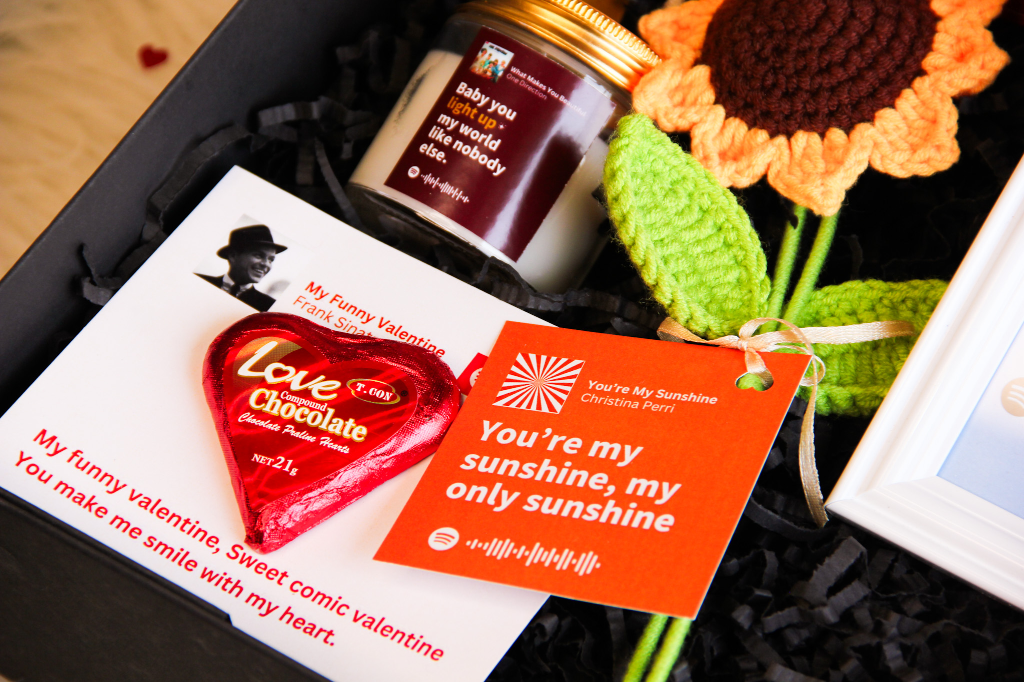 Celebrate love with our Classic Love Songs Valentine Hamper, inspired by timeless songs. Each inclusion is paired with a special Spotify code to make your gift even more meaningful: